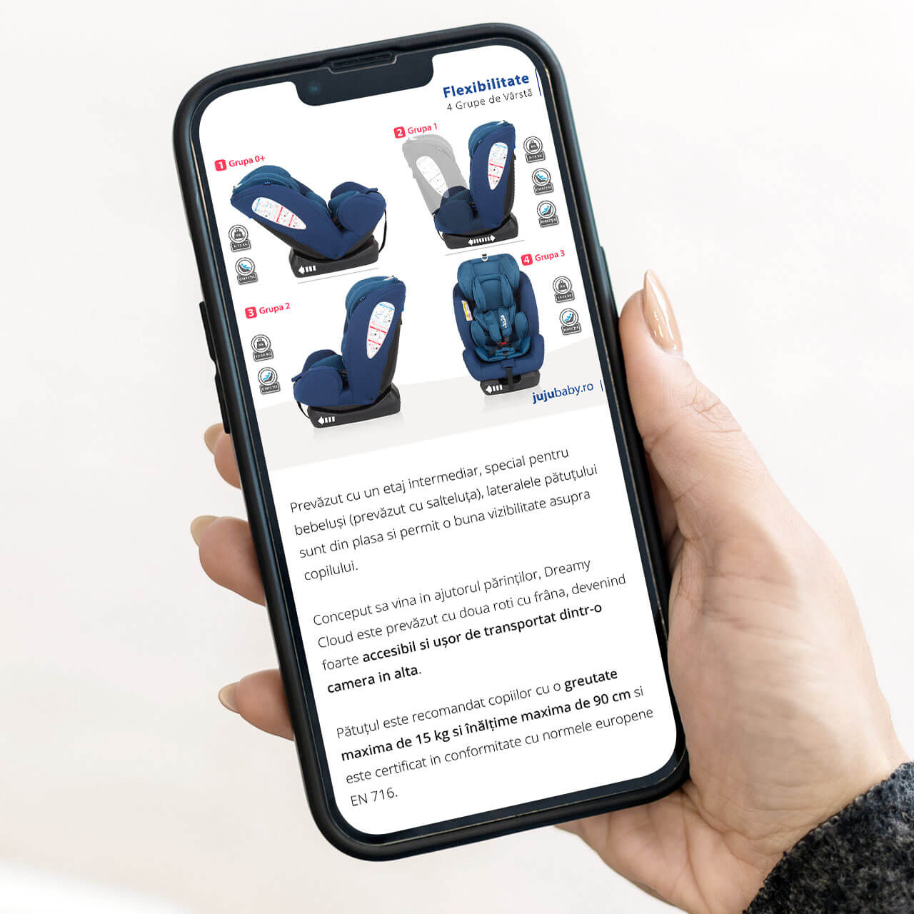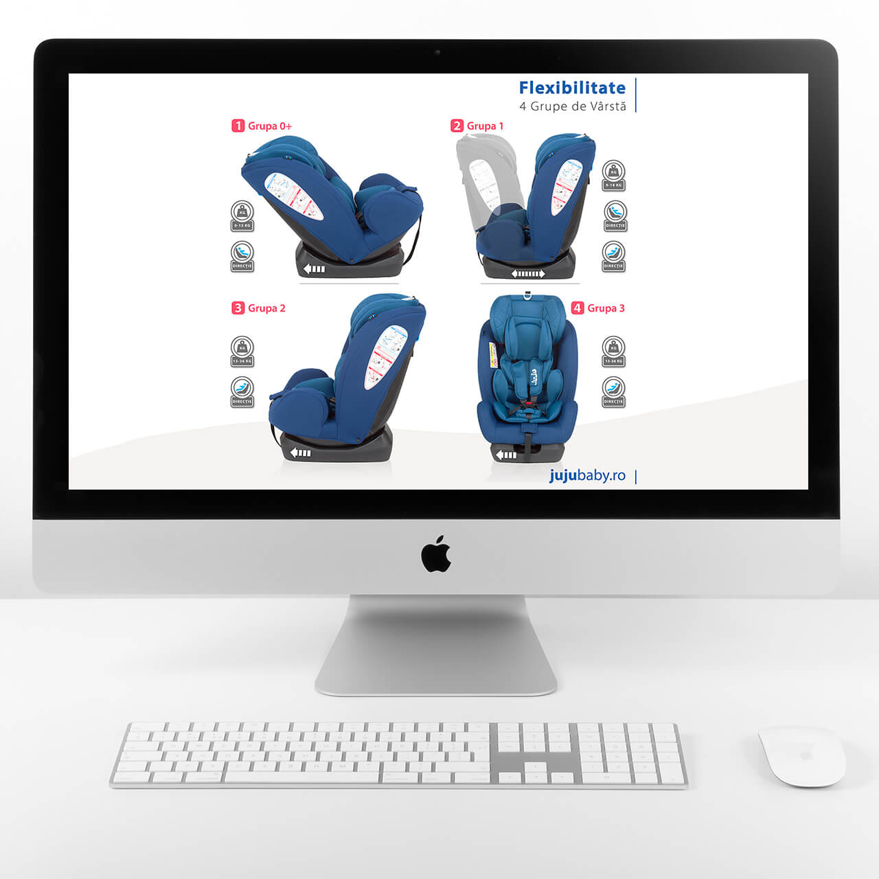 Color choices were selected to align with the existing brand visuals of jujubaby.ro, maintaining a clean and modern feel that appeals to parents shopping for safe and practical child car seats.